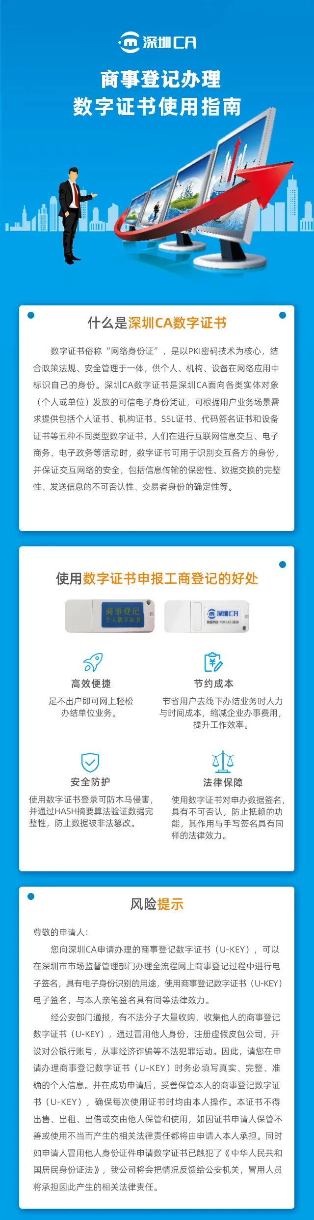 深圳市全面實行網(wǎng)上全流程注冊公司,所有股東、監(jiān)事等成員提供個人網(wǎng)銀U盾或者深圳CA數(shù)字證書進行公司設立申請。但是傳統(tǒng)個人網(wǎng)銀U盾需要去銀行排隊辦理;深圳CA可直接微信掃碼線上辦理10分鐘搞定!全國包郵接下來,我們一起來看看!